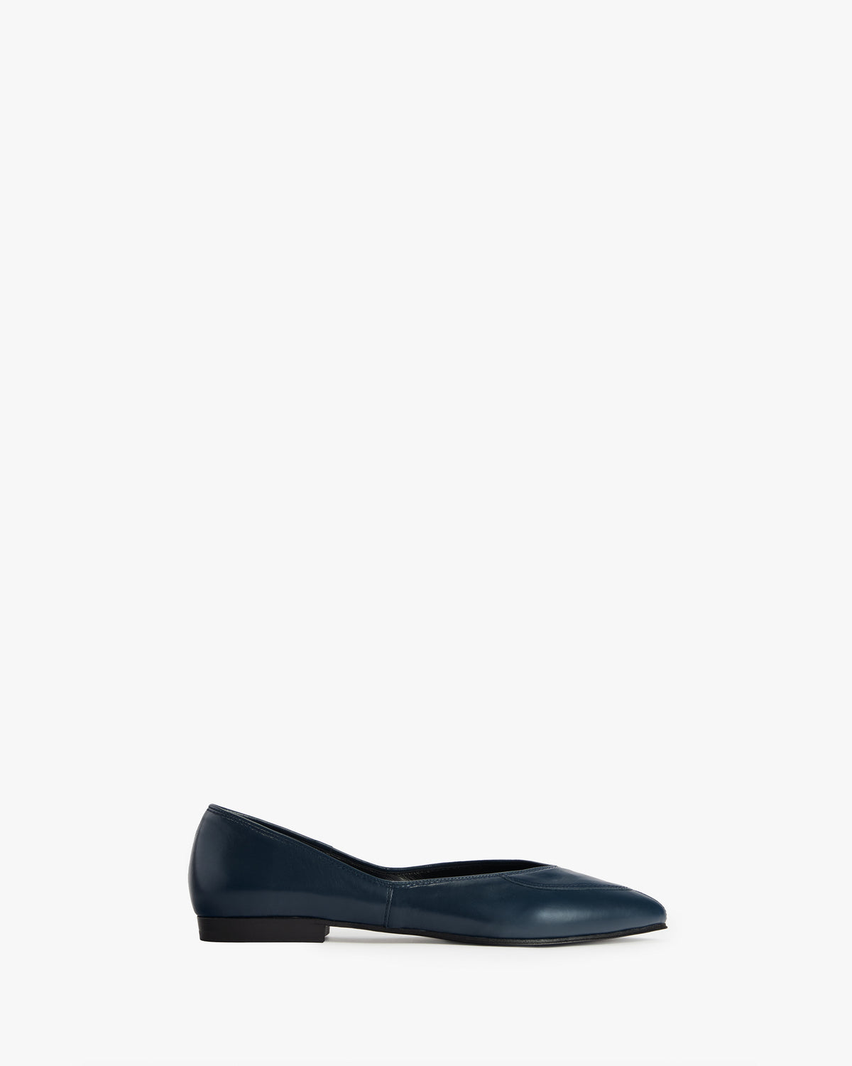 Ballerina with an almond toe shape, stitched vamp detail and v-shaped neckline.