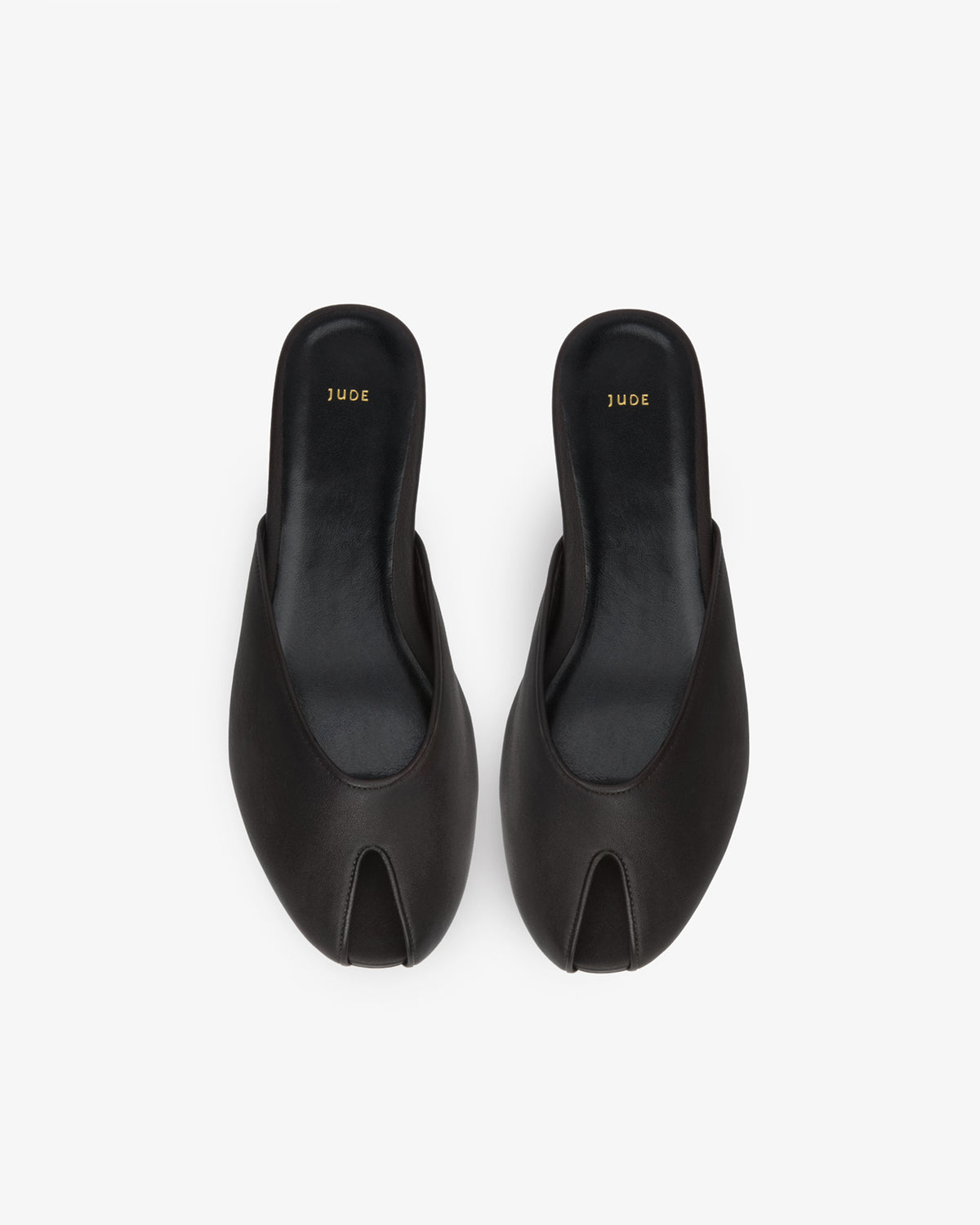 Leather flat mule with a peeptoe detail.