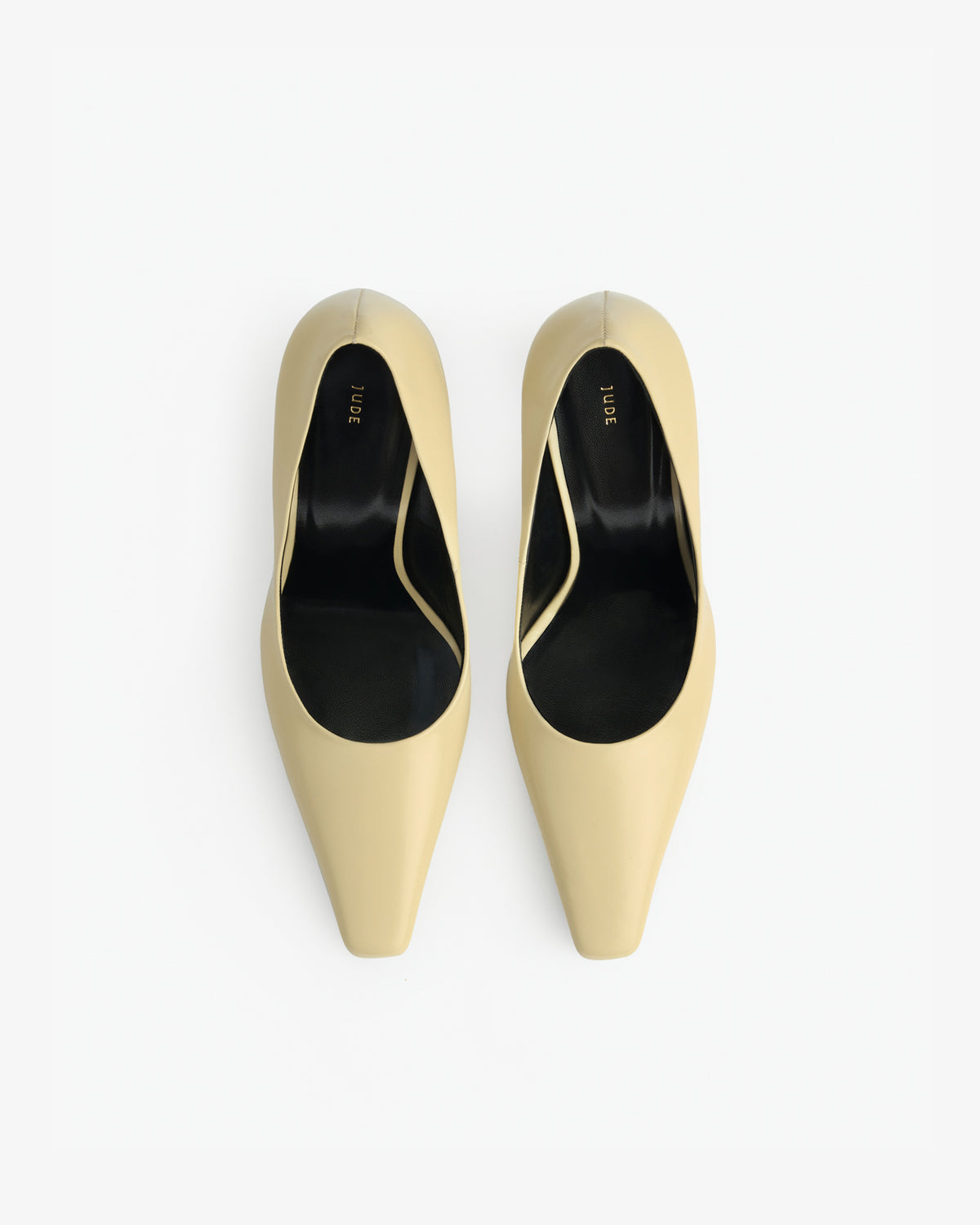 Almond toe pump with curved, dagger heel.