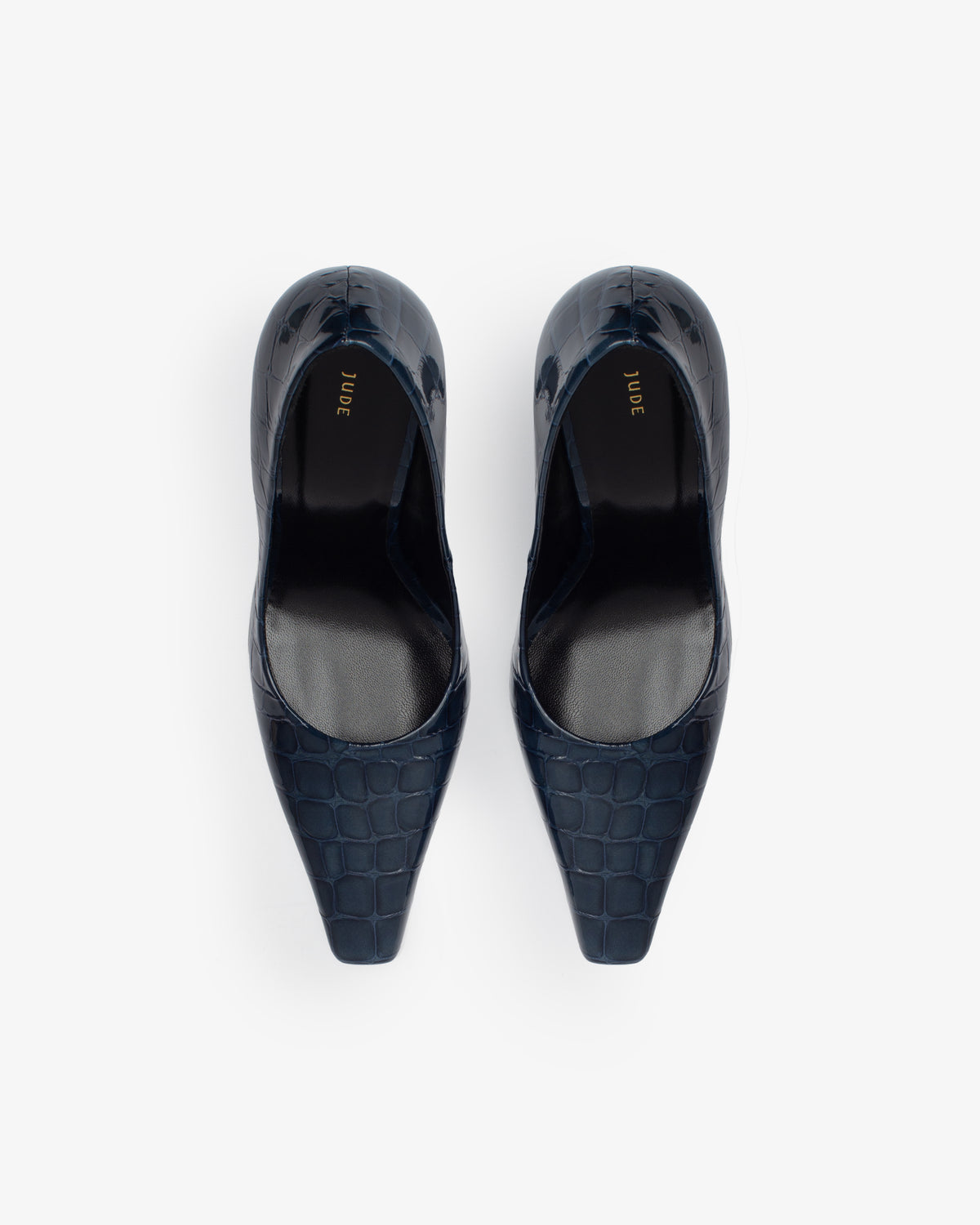 fame pump in ink croc embossed leather