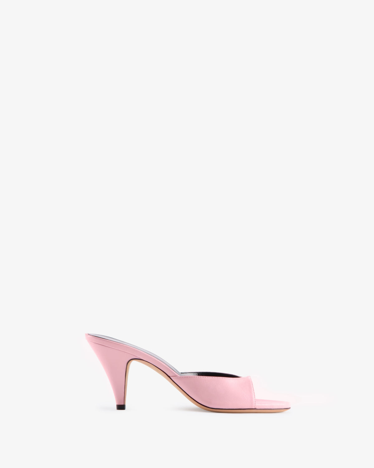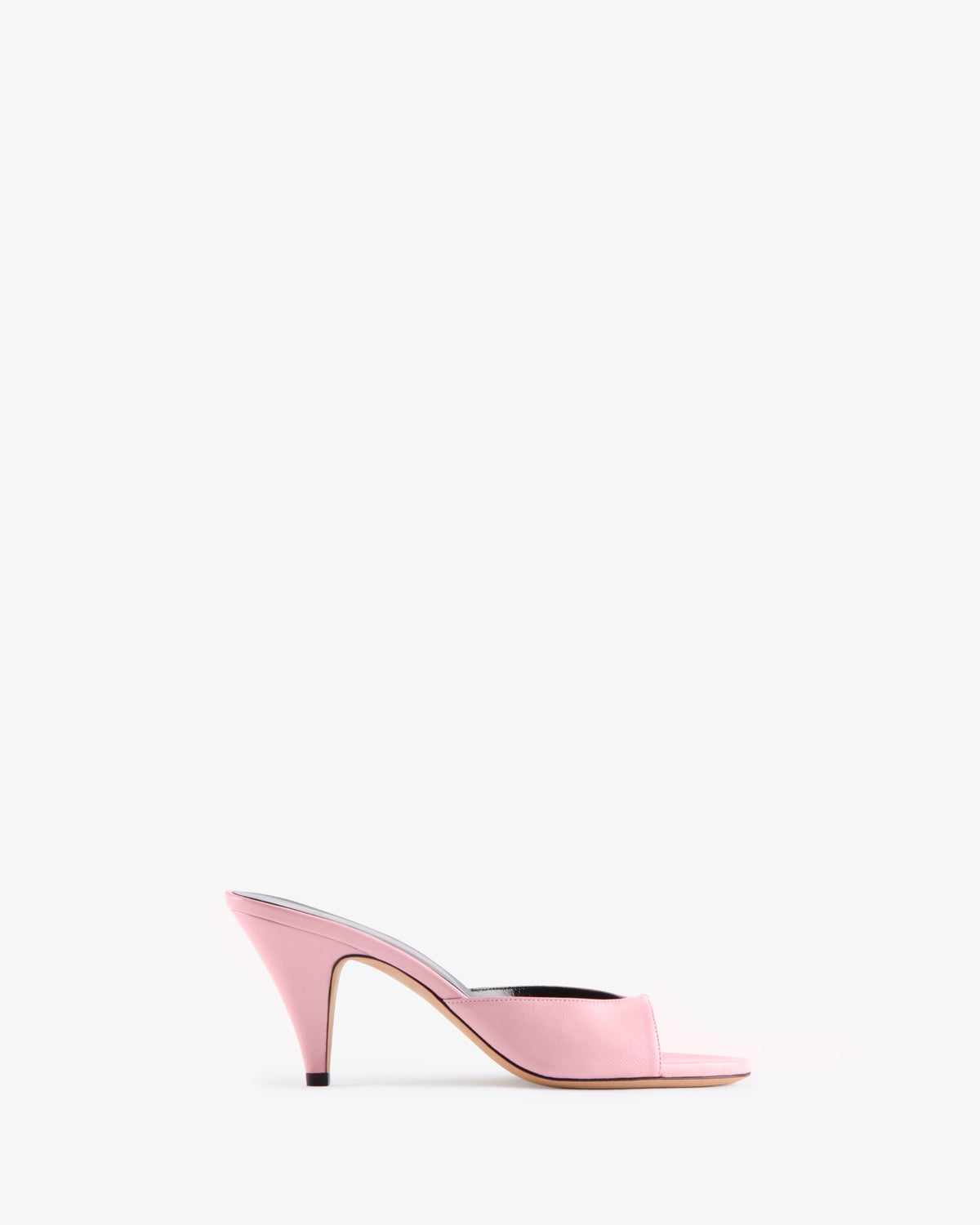 Slip on mule with cut out upper and sculpted heel.