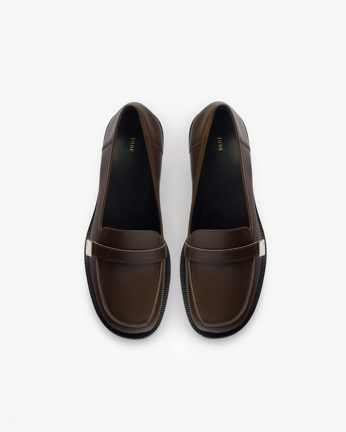 Simplified classic loafer in soft leather with hand stitched detailing and leather sole.