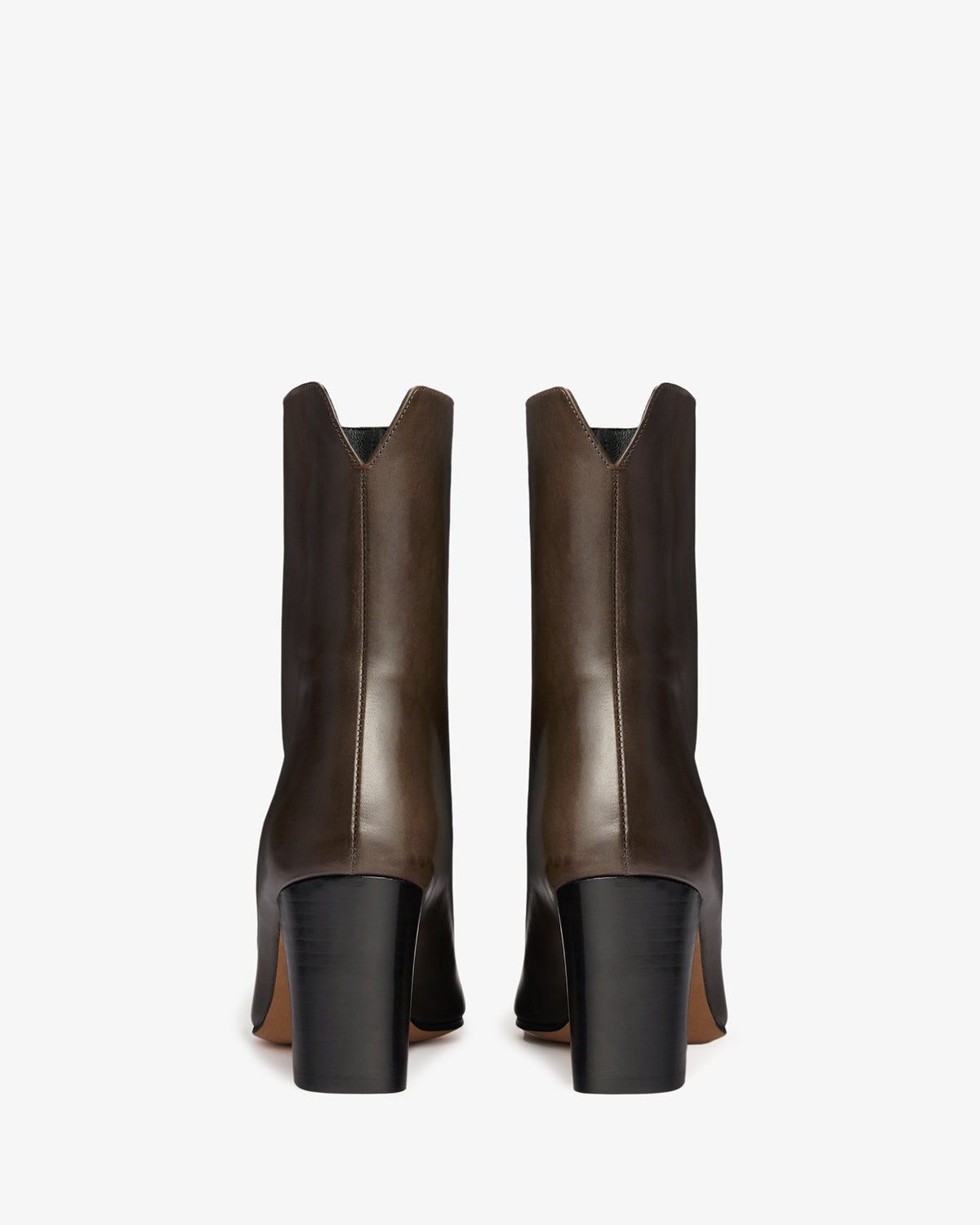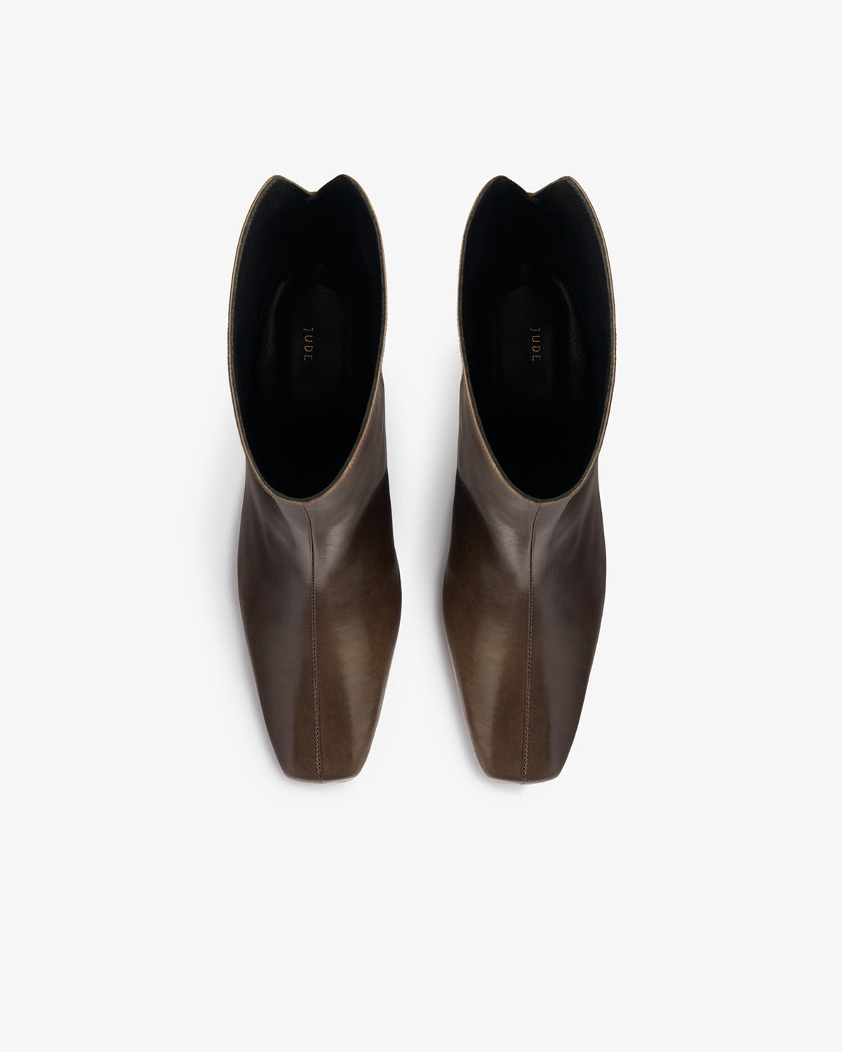 Ankle high stretch leather boot with square toe shape and block heel.